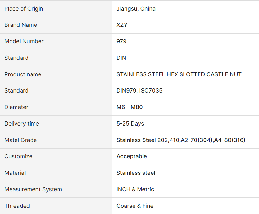 HEX SLOTTED CASTLE NUT