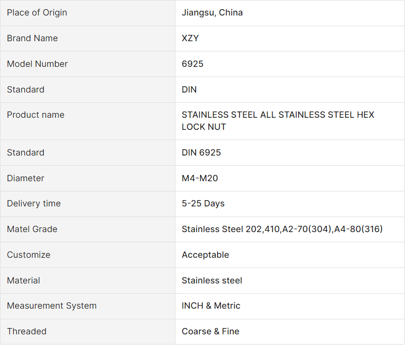 ALL STAINLESS STEEL HEX LOCK NUT
