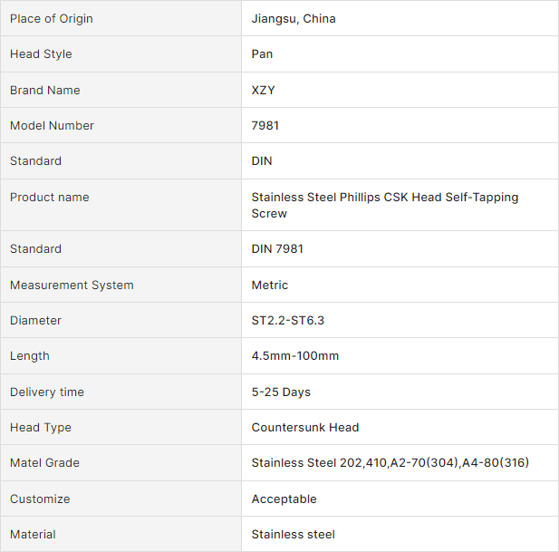 SELF-TAPPING SCREW PAN HEAD PHILLIPS Product code: Send Inquiry Live Chat Product Details Hot Products