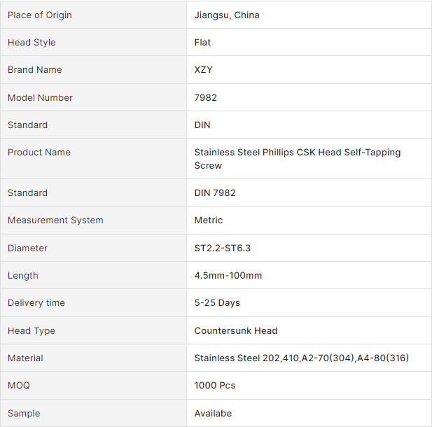 SELF-TAPPING SCREW CSK HEAD PHILLPS Product code: Send Inquiry Live Chat Product Details Hot Products