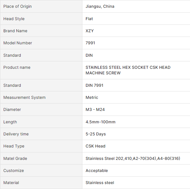 HEX SOCKET CSK HEAD MACHINE SCREW
