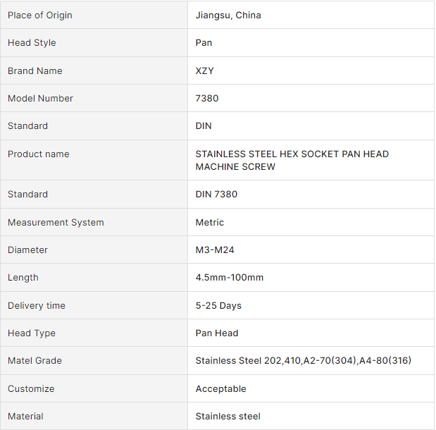HEX SOCKET PAN HEAD MACHINE SCREW