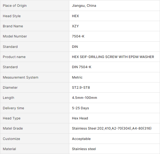 HEX SLEF-DRILLING WITH EPDM WASHER