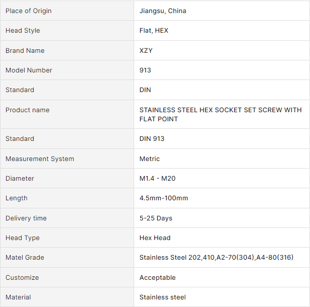 HEX SOCKET SET SCREW WITH FLAT POINT Product code: Send Inquiry Live Chat Product Details Hot Products