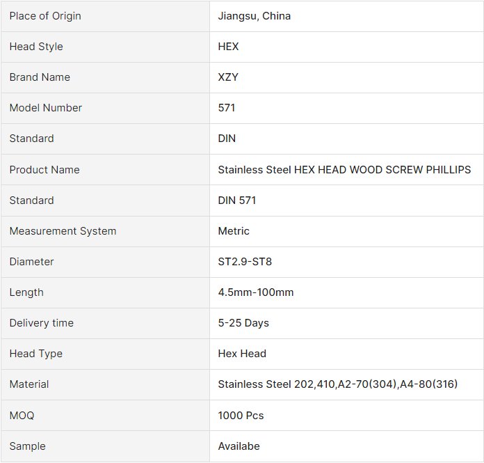 HEX HEAD WOOD SCREW PHILLIPS