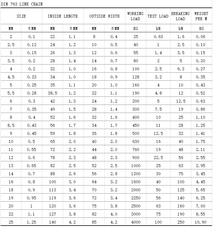 Product name: DIN 763 LINK CHAIN (German standard chain)